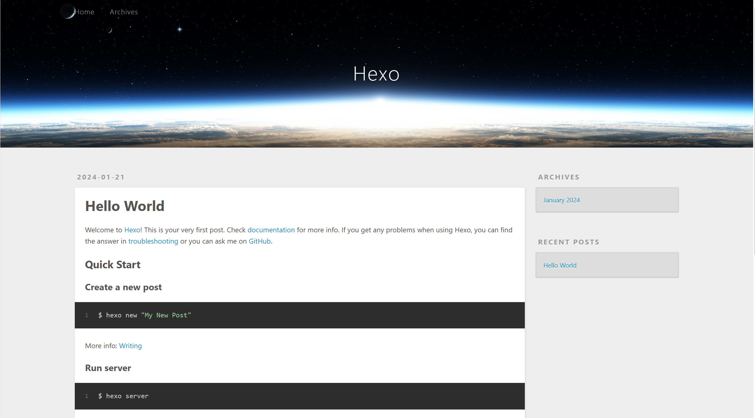 ```bash npm config set registry https://registry.npm.taobao.org npm install hexo-cli -g hexo -v hexo init hexo generate hexo server ```