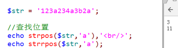 Strpos(字符串,匹配字符):判断字符在目标字符串中出现的位置(首次)