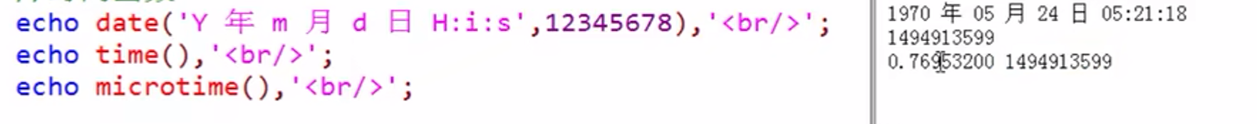 date(): 按照指定格式对对应的时间戳(从1970年格林威治时间开始计算的秒数),没有指定时间戳,就是默认当前的时间戳。