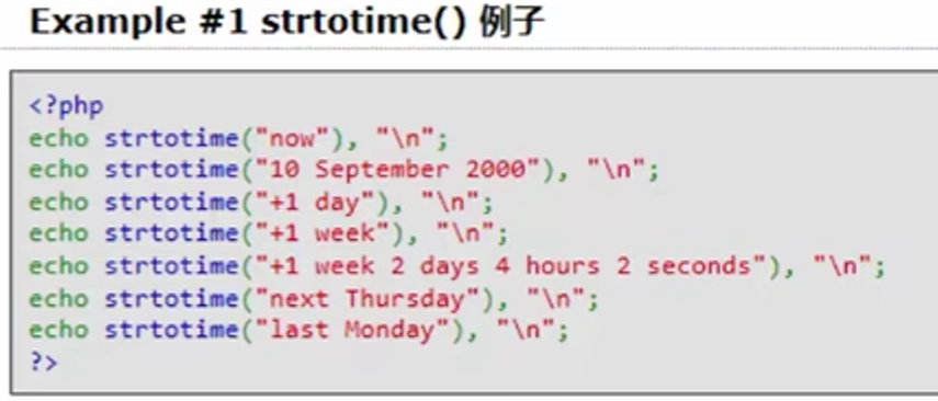 Strtotime(): 按照规定格式的字符串换成时间戳。