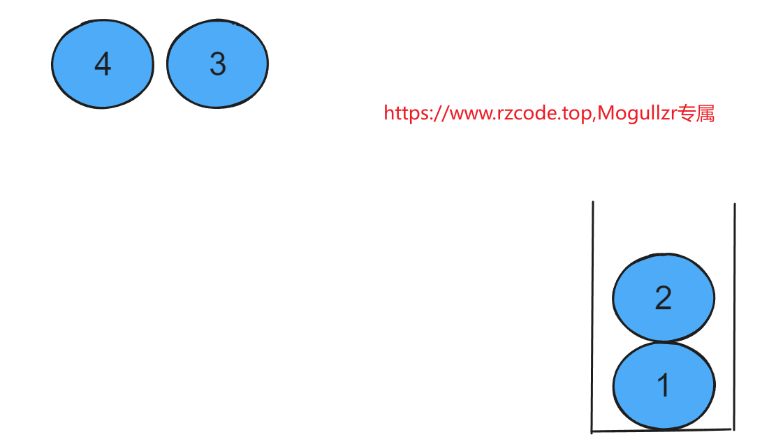 出栈操作(从栈顶弹出一个数):必须按照从上往下的顺序弹出栈里元素操作,比如下图,不可以先将球1拿出来,必须先将球2拿出来之后再拿球1